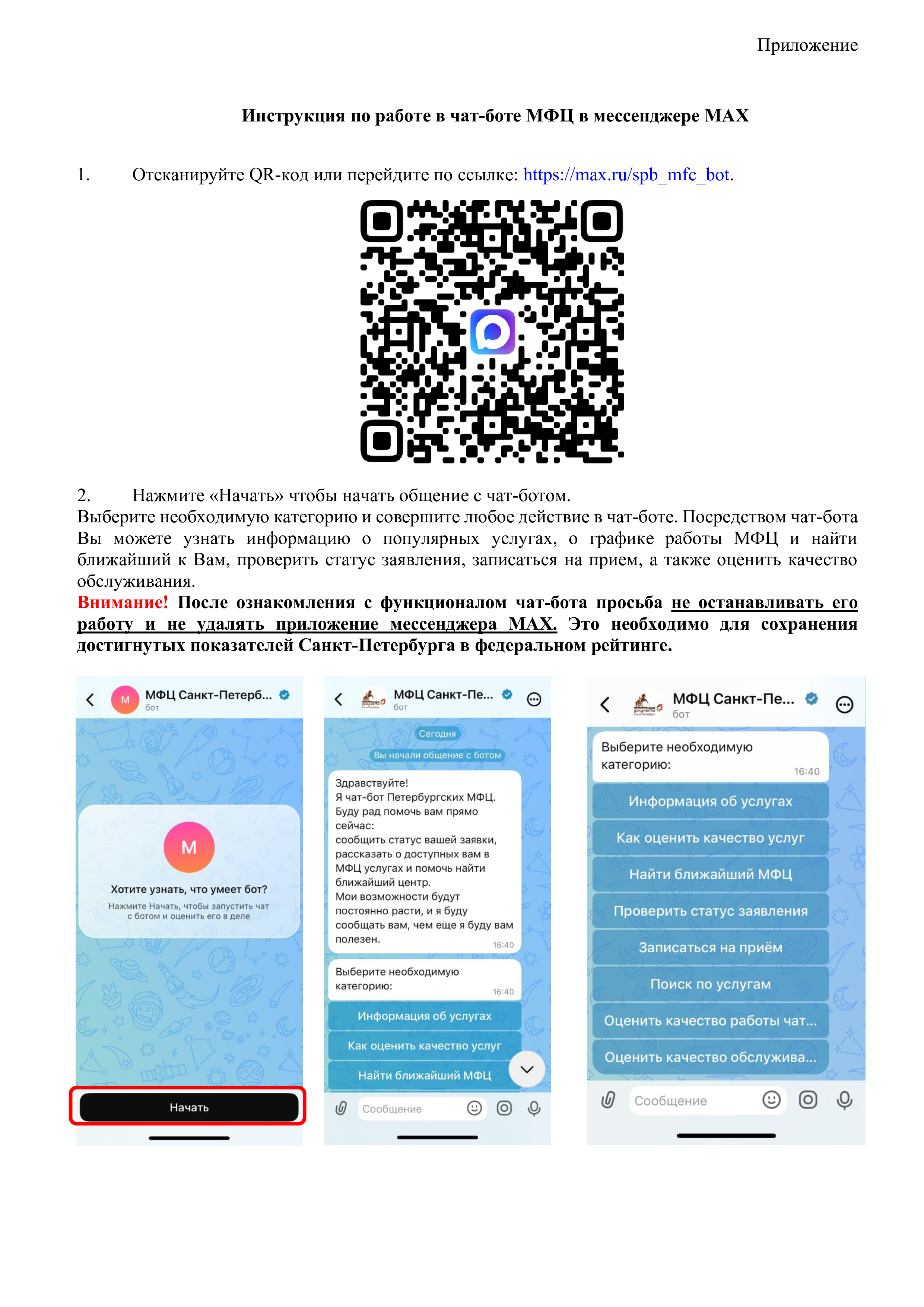 1. Отсканируйте QR-код или перейдите по ссылке:https://max.ru/spb_mfc_bot.