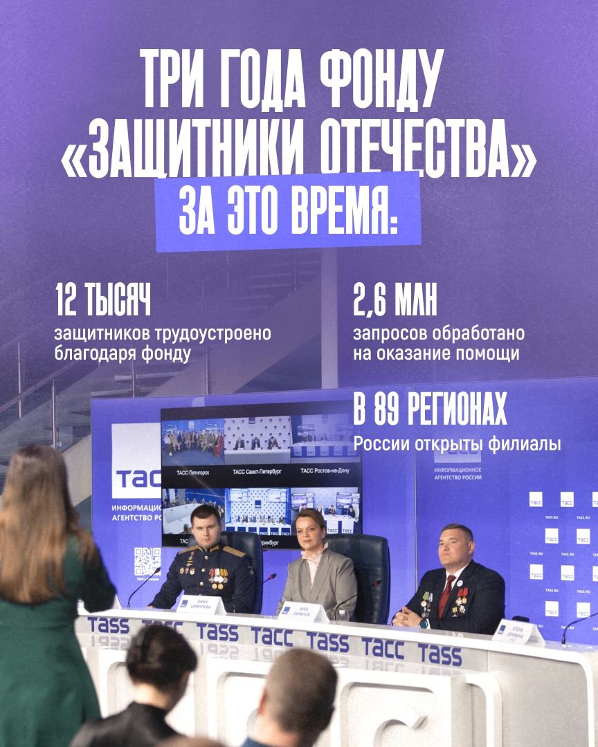 На пресс‑конференции в ТАСС подвели итоги работы фонда «Защитники Отечества» — организации, созданной по указу Президента для поддержки ветеранов СВО и их близких.